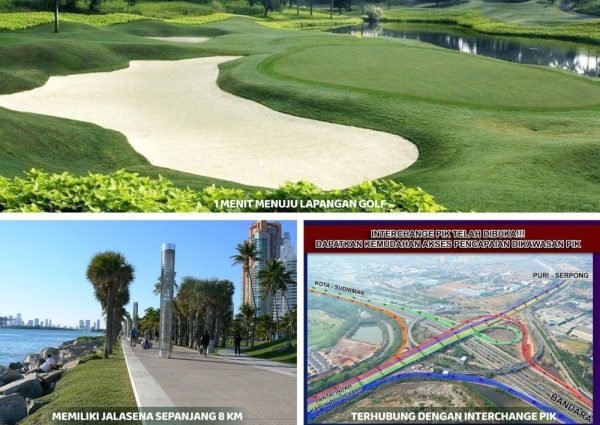 Untuk Akses ke Perbelanjaan dan Kuliner : Hanya 1 Menit menuju Fresh Market, 1 Menit menuju Food Street Golf Island, 2 Menit menuju PIK Avenue,