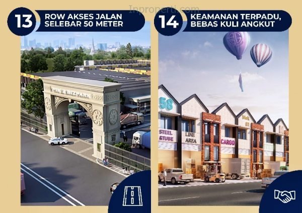 - Gudang Bizpark PIK 2 berlokasi hanya 7 menit menuju CBD PIK 2, dimana sudah bergabung perusahaan-perusahaan internsional.